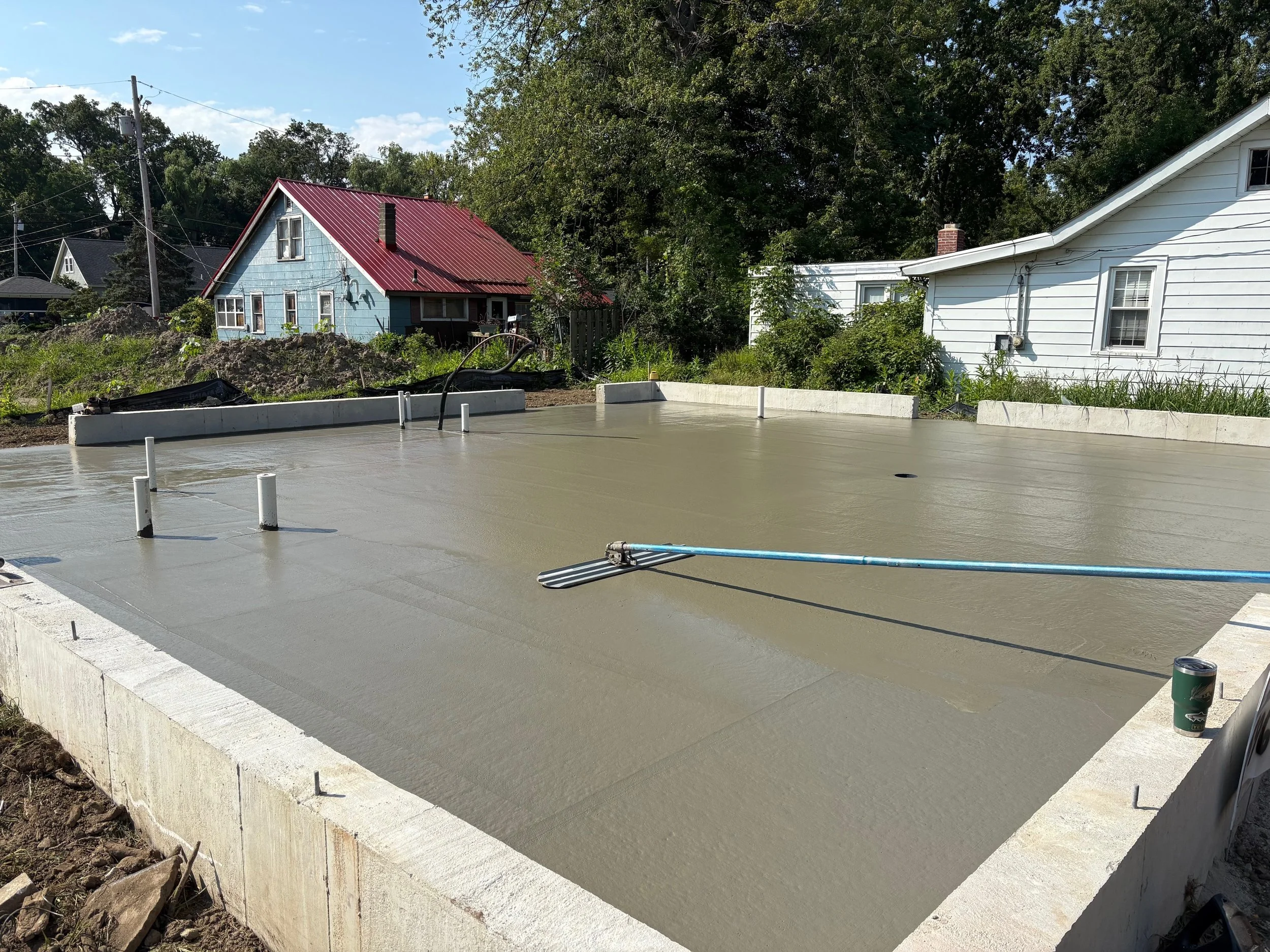 • Garage Foundations & Slabs – New pours, replacements, or repairs: properly reinforced footings, leveled slabs, and drainage grading to prevent heaving and cracking in winter.