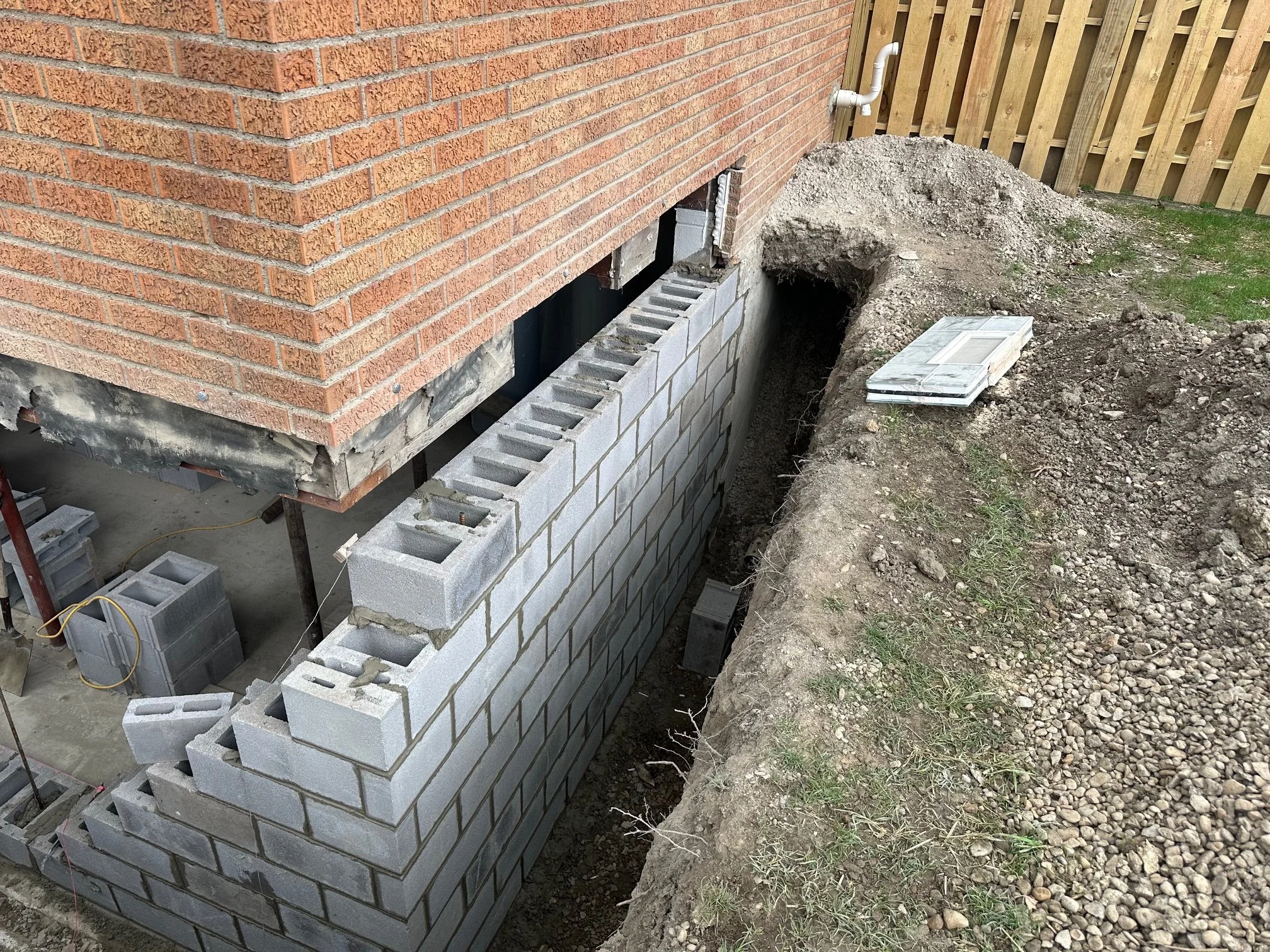 • Masonry Wall Rebuilds & Repairs – Full or partial rebuilds of block, brick, or concrete walls; tuckpointing; crack sealing; and stabilization for foundations, retaining walls, chimneys, or damaged sections.